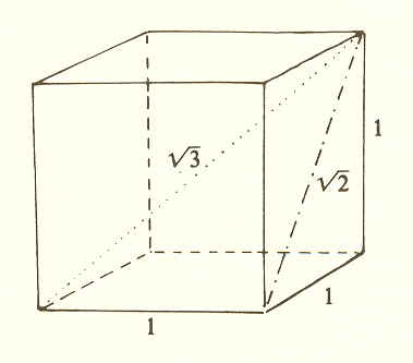 we must leave the two-dimensional plane. Full representation of the cube roots of unity ultimately involves the three dimensions of space. The threefold operator, represented analytically as equidistant points on the circle, is actually a three-dimensional activity, whose measure gives only its analytic aspect. The analytic aspect, which is in two dimensions, does not convey the full meaning of the cube root; it is like the shadow of a solid figure.