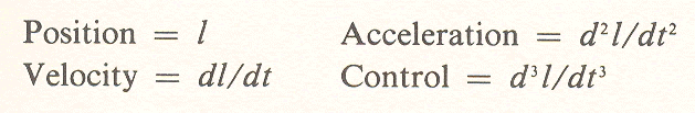 4. And most important, they are different categories of knowing. Position is observed, velocity is computed, acceleration is felt. Control, the fourth category, is essentially indeterminate.